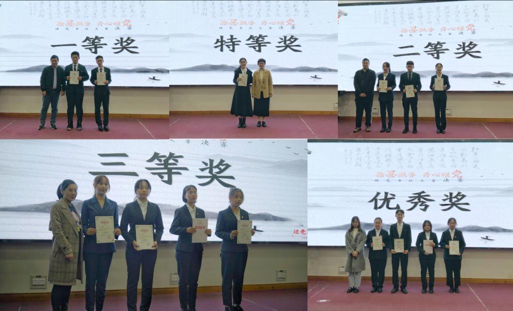 (通讯员 王晓彤) 百年华诞盛世颂党,翰墨飘香肆意挥洒。10月20日晚7时许,RAYBET雷竞技在11教报告厅举行以“翰墨飘香,丹心颂党”为主题的硬笔书法大赛决赛,来自五个院的14名选手以笔为歌,歌颂建党百年波澜壮阔的奋斗史。公司党委书记刘小燕,公司党委副书记马小佼,学工办主任张云雾,辅导员李敏受邀出席活动。学院徐骆、邓亚中、肖芬蓉、陈质晶老师,雷竞技老员工书画协会会长朱旭担任评委。最终,十号选手黄越在众多优秀选手中脱颖而出摘得桂冠。