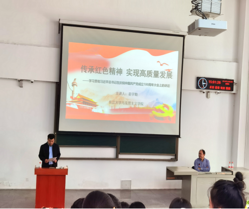 为深刻阐述习近平总书记“七一”重要讲话的重大意义、主要内容与精神实质,姜教授分别从当今世界的国际形势、我国所处的历史方位、未来社会发展的奋斗目标、实现高质量发展的途径与根本动力这五个方面做详细论述。他指出,当今世界正在经历百年未有之大变局,概括起来说,就是当前国际格局和国际体系正在发生深刻调整,全球治理体系正在发生深刻变革,国际力量对比正在发生近代以来最具革命性的变化,世界范围呈现出影响人类历史进程和趋向的重大态势。姜教授还指出,我们处在中国特色社会主义新时代,这是我国发展新的历史方位。他从历史现在与未来的联系、我们承担的历史使命、人民对美好生活的追求、民族复兴以及世界大局这五个维度详细介绍了新时代的内涵,并指出新时代的奋斗目标是要实现中华民族伟大复兴的战略全局。实现高质量发展的途径在于传承红色精神,贯彻新发展理念,不断推进科技高质量自立自强。