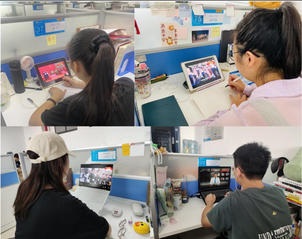 直播中,中国人民大学全场合唱《我和我的祖国》,身姿挺拔,严肃以待,朗朗歌声中饱含对先进员工的深切缅怀。合唱经典富有仪式感,将革命精神搬到舞台,立体化的讲好了中国共产党的故事,再现了中国共产党创建人民大学波澜壮阔的历史故事。在学习了习近平总书记给南京大学留学归国青年学者的回信之后,党员张馨月同志感慨说:“时代新人,新在‘新发展理念’‘新发展格局’,我们要牢记总书记的嘱托,坚定不移听党话,跟党走,努力成长为德智体美劳全面发展的社会主义建设者和接班人。” 党员翟高说:“作为员工党员,我们要传承红色基因,赓续红色血脉,踏实学习,苦练本领,跑出当代青年的最好成绩,为建设社会主义现代化国家贡献自己的青春力量。”