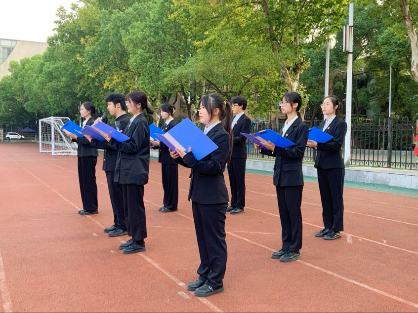 在恢宏的国歌声中,在整齐的合唱声中,红旗缓缓升起,伴着火红的朝阳,滚烫在师生们的眼里。“秋来果熟,春生叶起,你们就是马院这棵大树上长出的新叶。”员工代表蔡少卓进行国旗下发言,以亲身体验对22级新生表达祝贺与期待并对全院员工提出“终生学习、学习终生”的倡议。