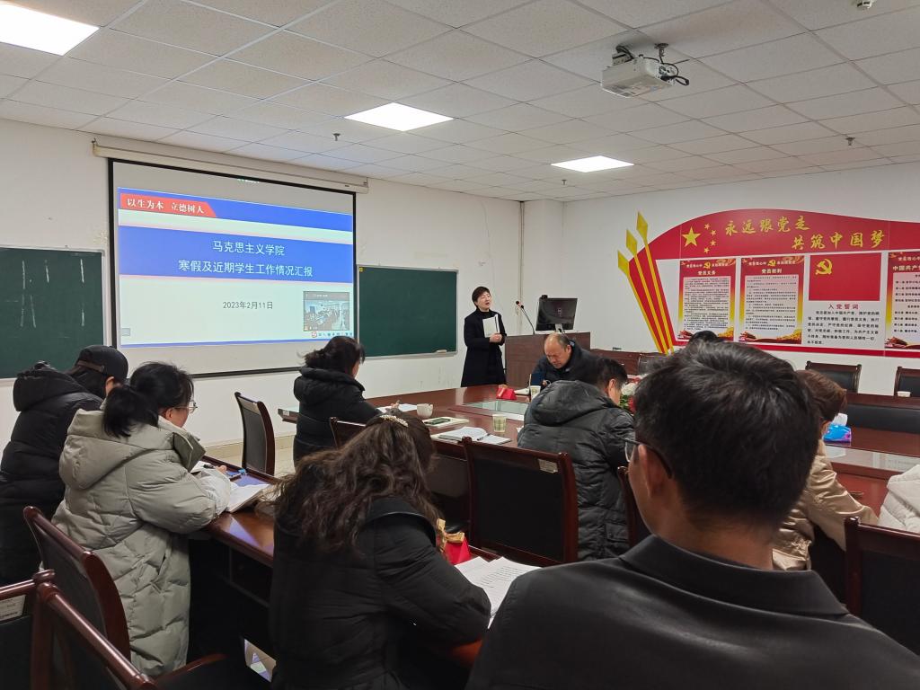 随后,经理助理李振华传达了学校教学工作例会精神,对考试安排、教学运行、创新创业等工作进行了强调,部署了师范专业认证、审核评估自评自建、教学创新大赛筹备启动等重点工作。副经理涂江波围绕研究生招生、培养以及团队建设等工作进行了部署,副书记马小佼通报了寒假期间员工工作有关情况以及开学初的重点工作,动员老师们以“万名党员教师家校协同行动”为契机深入开展谈心教育、生命教育。