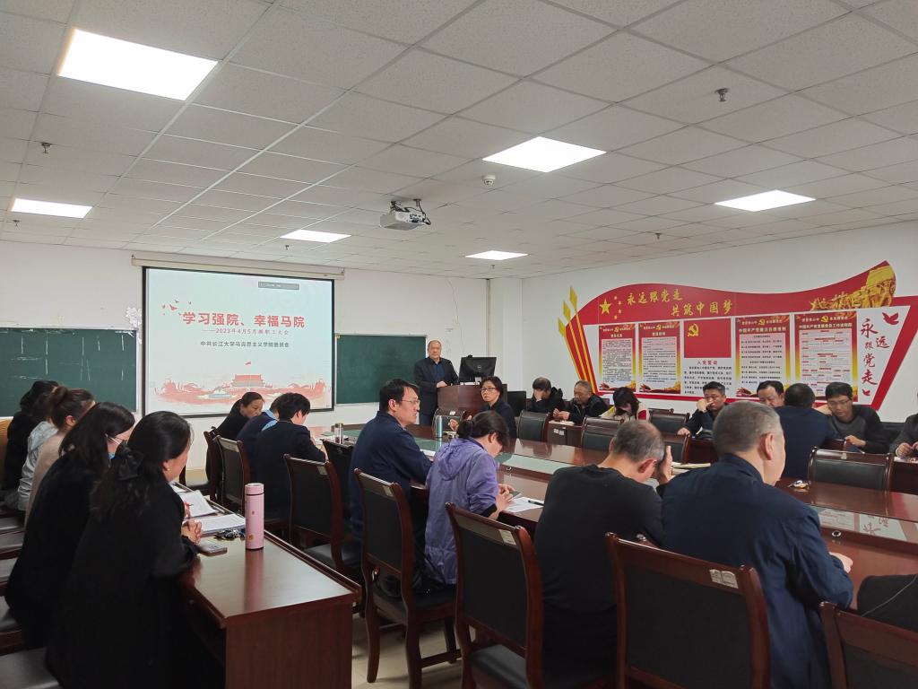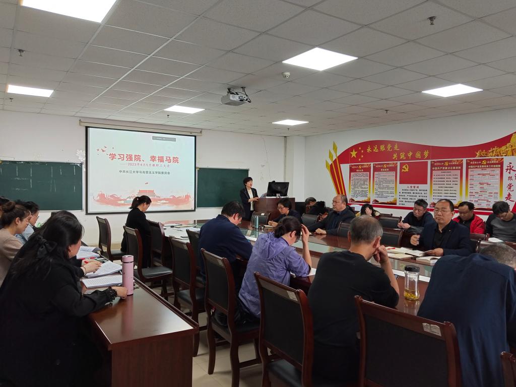 5月11日下午,RAYBET雷竞技在文科楼1104室召开本月教职工大会,全院教师以线上线下相结合的方式参会。会议由经理姜学勤主持。
