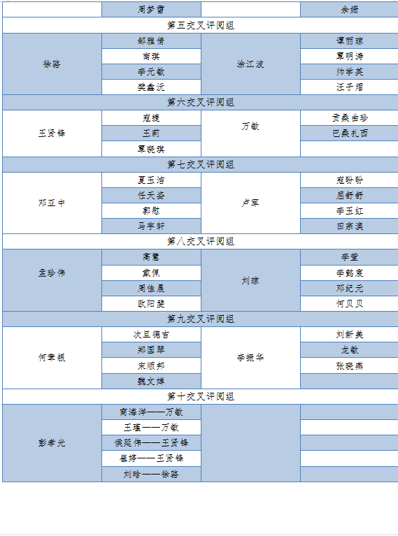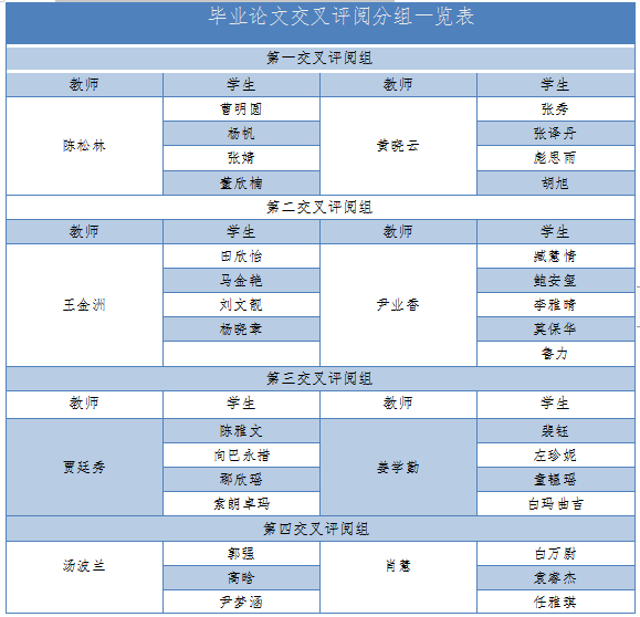 附录:毕业论文交叉评阅分组一览表