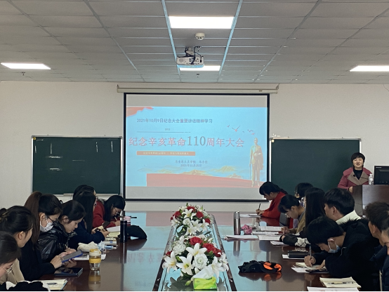 本次学习活动由公司党委副书记马小佼老师担任主讲人。马书记从“纪念辛亥革命110周年大会的会议概况、革命成果、革命意义、大会讲话的全文内容、大会总结”共五个版块进行了讲解,带领学员们重温了孙中山先生“唯愿诸君将振兴中国之责任,置之于自身之肩上”的讲话,并着重强调我们要有捍卫国家主权和领土完整的坚强决心、坚定意志、强大能力,呼吁同学们发扬孙中山先生等辛亥革命先驱的伟大精神,携手向着中华民族伟大复兴的目标继续奋勇前进,为实现祖国完全统一的历史任务共同努力。