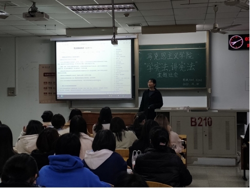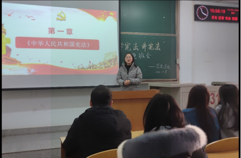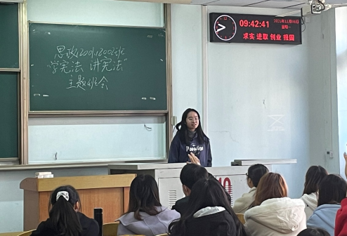11月8日,思政20级全体员工于13教B310开展“学宪法 讲宪法”主题班会,会上,思政12002班李春燕向同学们普及了国家宪法日暨全国法制宣传日等法治知识,讲述了国家宪法日的设立意义,倡导大家作为新青年应主动弘扬宪法精神、履行宪法使命。