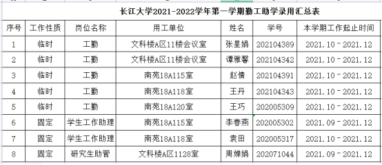 经员工本人申请,学院审核,现将公司2021-2022学年第二学期勤工助学拟录用名单公示如下: