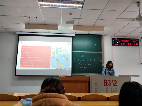 4月27日,第二学士学位本科班级、2018级研究生相继于文科大楼1104组织召开运动安全教育班会, 副书记马小佼参与了班会,除提醒假期外出的同学注意出行安全外,还提醒假期留校员工遵守学校相关规定,按时就寝、注意防火防盗。