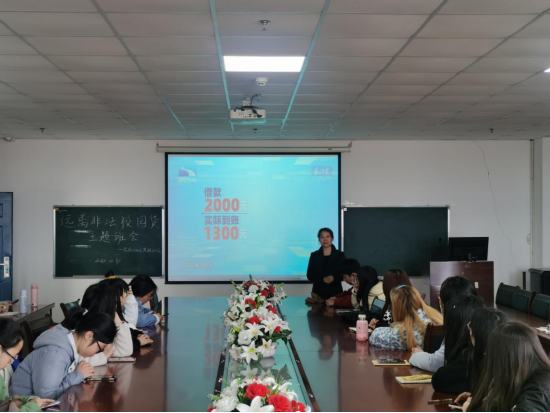 11月30日下午,学院组织2020级全体新生在文科楼1104室集中观看了“远离非法校园贷”专题讲座。辅导员张云雾老师结合讲座内容从充分认识非法校园贷的巨大危害、提高识别和防范校园贷的能力、养成文明理性消费习惯等三个方面对新生做了安全提示。思政12002班李光钰同学说,通过老师的讲解以及网络视频的学习,我知道了校园贷产生的原因及其严重危害。校园贷不仅会危害我们的学习生活,还会拖累我们的亲人,甚至有些家庭因为校园贷弄的家破人亡。作为当代老员工的我们,要提高思想觉悟,遵纪守法、合理消费,切莫陷入校园贷的深渊之中。当我们遇到校园贷问题时,应第一时间和老师沟通和报警求助。同时,我们也应积极监督、举报社会和校园中非法校园贷的现象,为社会的和谐作出贡献!