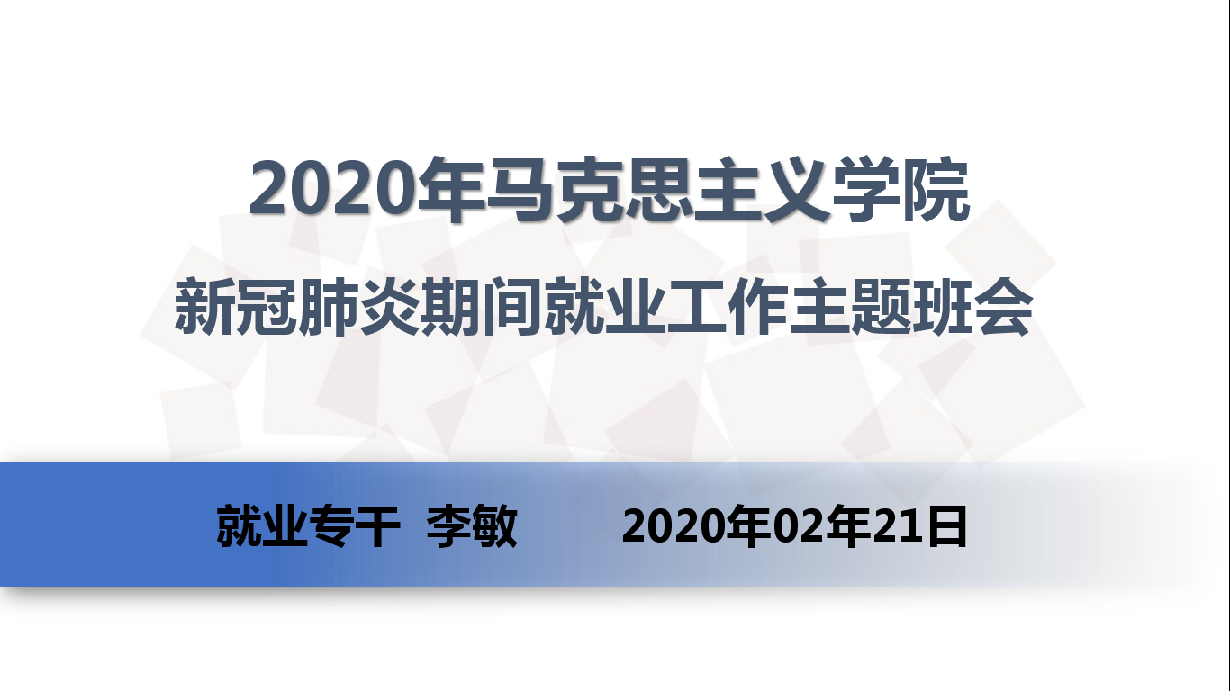 会议对疫情防控期间做好就业工作的国家政策、学校举措和学院方案进行了解读。为做好毕业生就业工作,国家出来了一系列政策,学校采取了许多措施,如启动心理援助、推送招聘信息、组织线上招聘、强化网络服务、开展精准帮扶、推进信息服务等。学院发挥主体作用,出台院系就业方案,责任到人,成立就业工作领导小组;上下一心,全员参与就业;因院制宜,精准特色开展工作。群策群力,精准施策,共同推动学院毕业生高效就业。