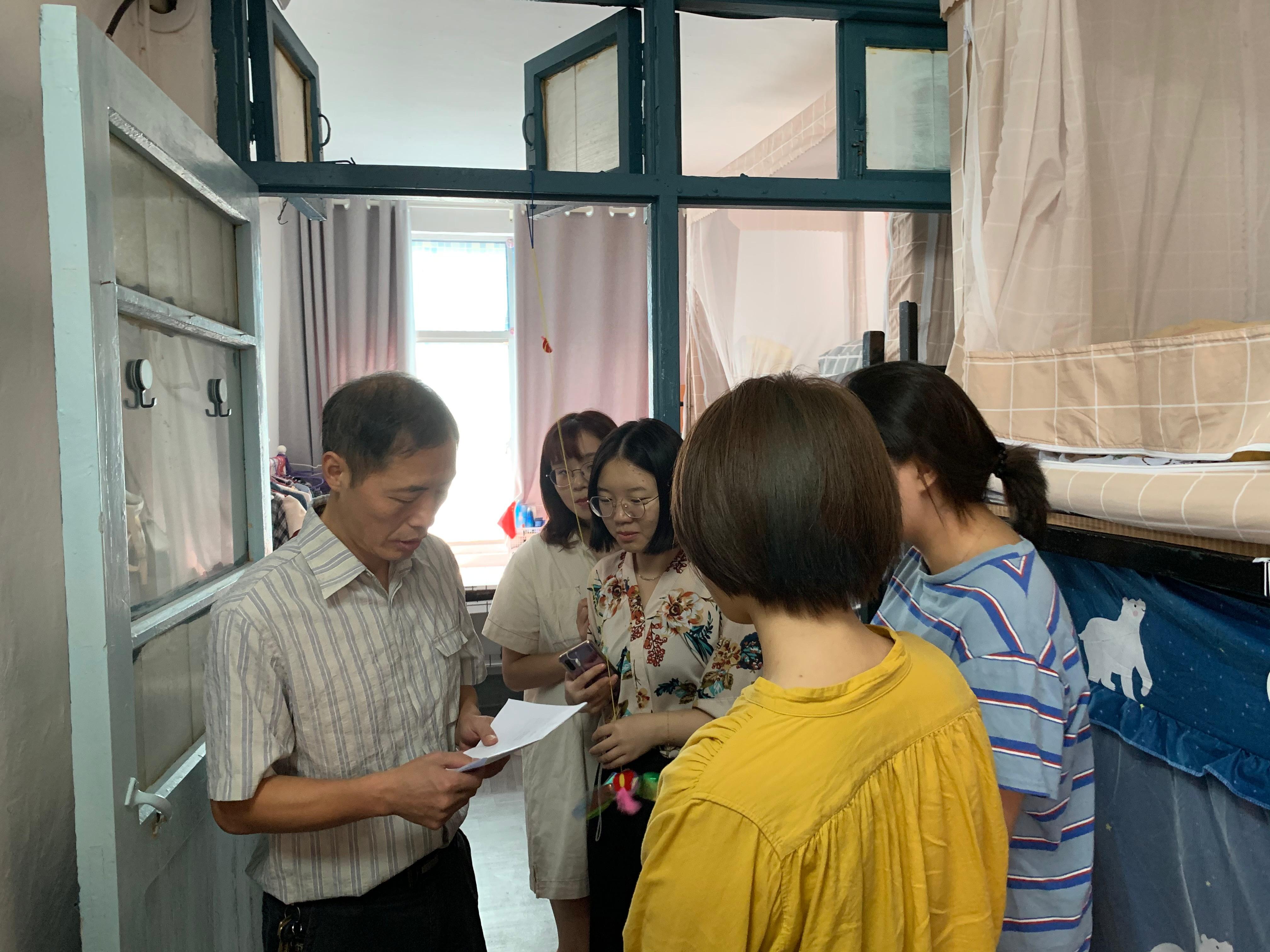 为了进一步提高员工们的安全防范意识,同时创造良好的生活环境,2019年9月27日上午公司党委书记吴智勇、兼职辅导员董思遥,来到研究生寝室进行安全隐患排查以及卫生大检查。