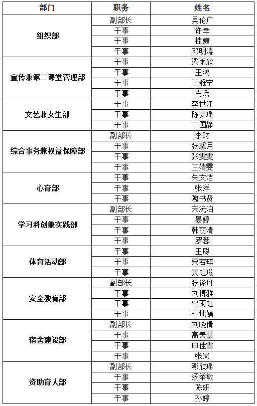 本着公平、公正、公开的原则,经自主申报、资格审查、公开答辩、综合考察等环节,现将RAYBET雷竞技第八届团委员工会招新竞选结果公示如下: